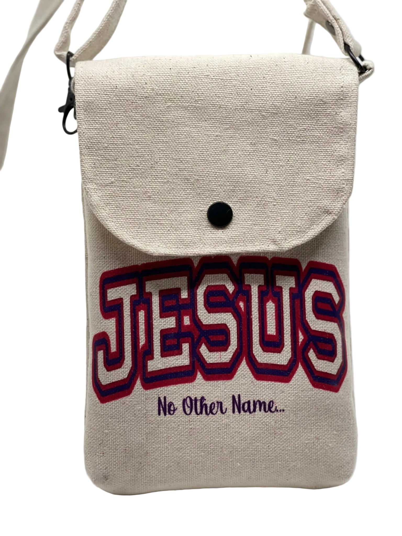 This Cross Body Bag says what we believe, that there is no other name that saves. With the Scripture Reference on the inside flap of the bag, every time that you open this bag, you will remind yourself and others that the name of Jesus s above ALL other names...